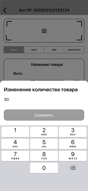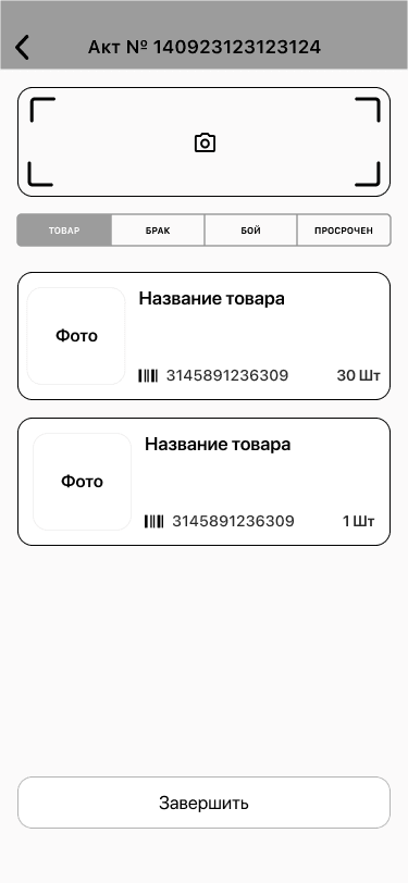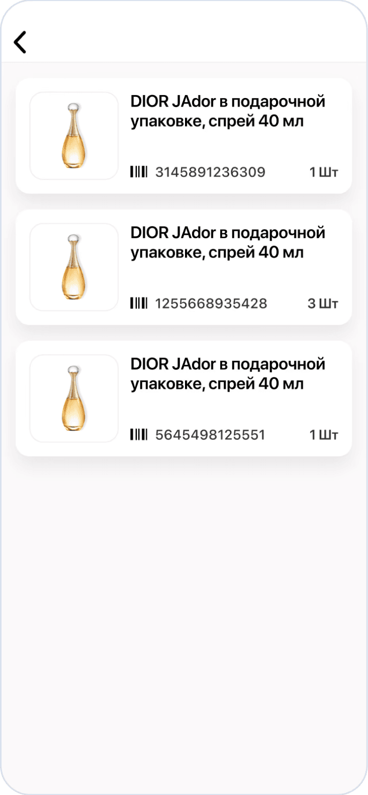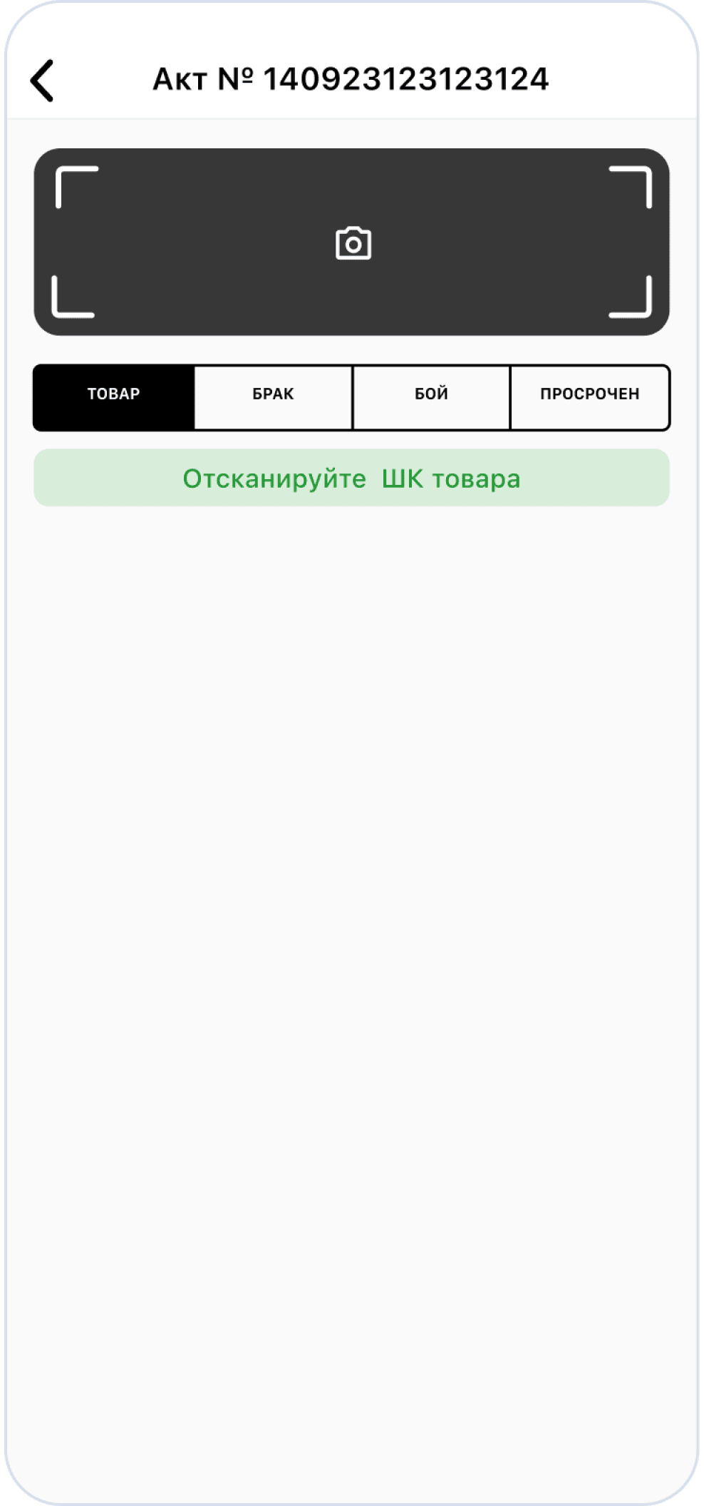 Чтобы отсканировать новый товар, пользователю необходимо вернуться на главный экран и начать процесс заново. Тот же принцип применяется к редактированию и просмотру уже отсканированных товаров — для этого требуется переход на основной экран и повторное выполнение действий