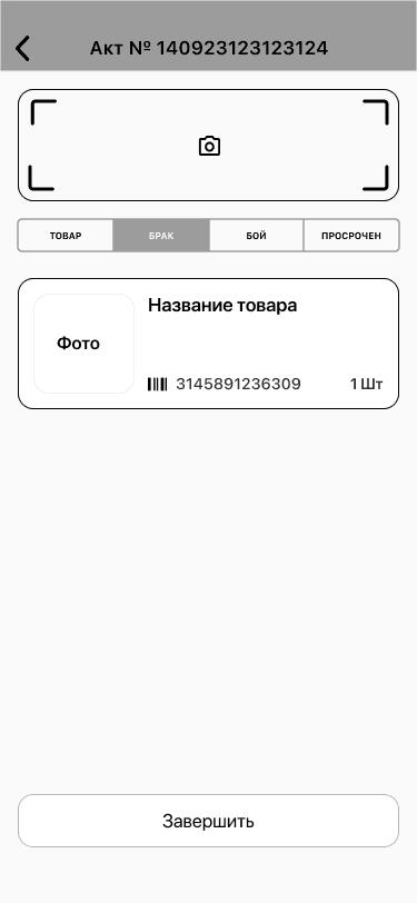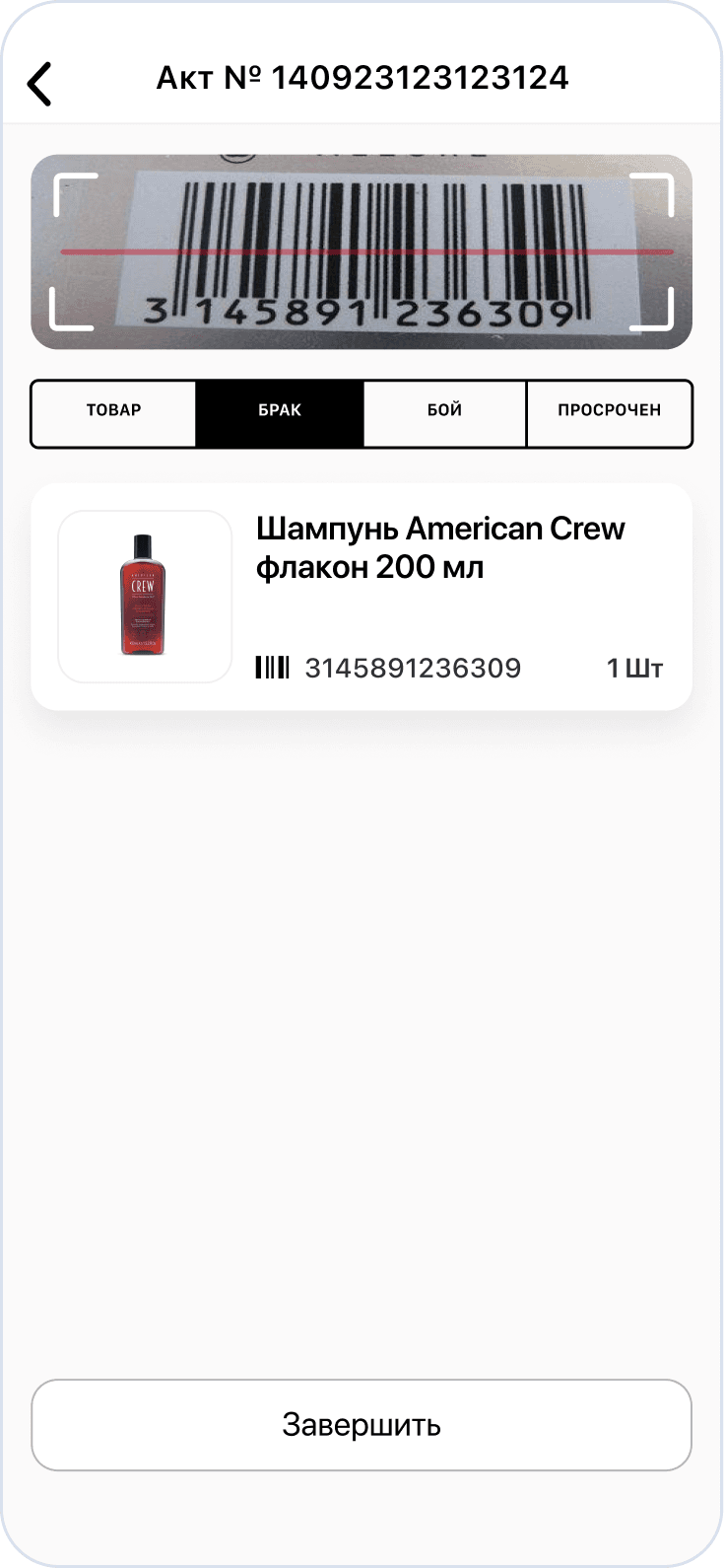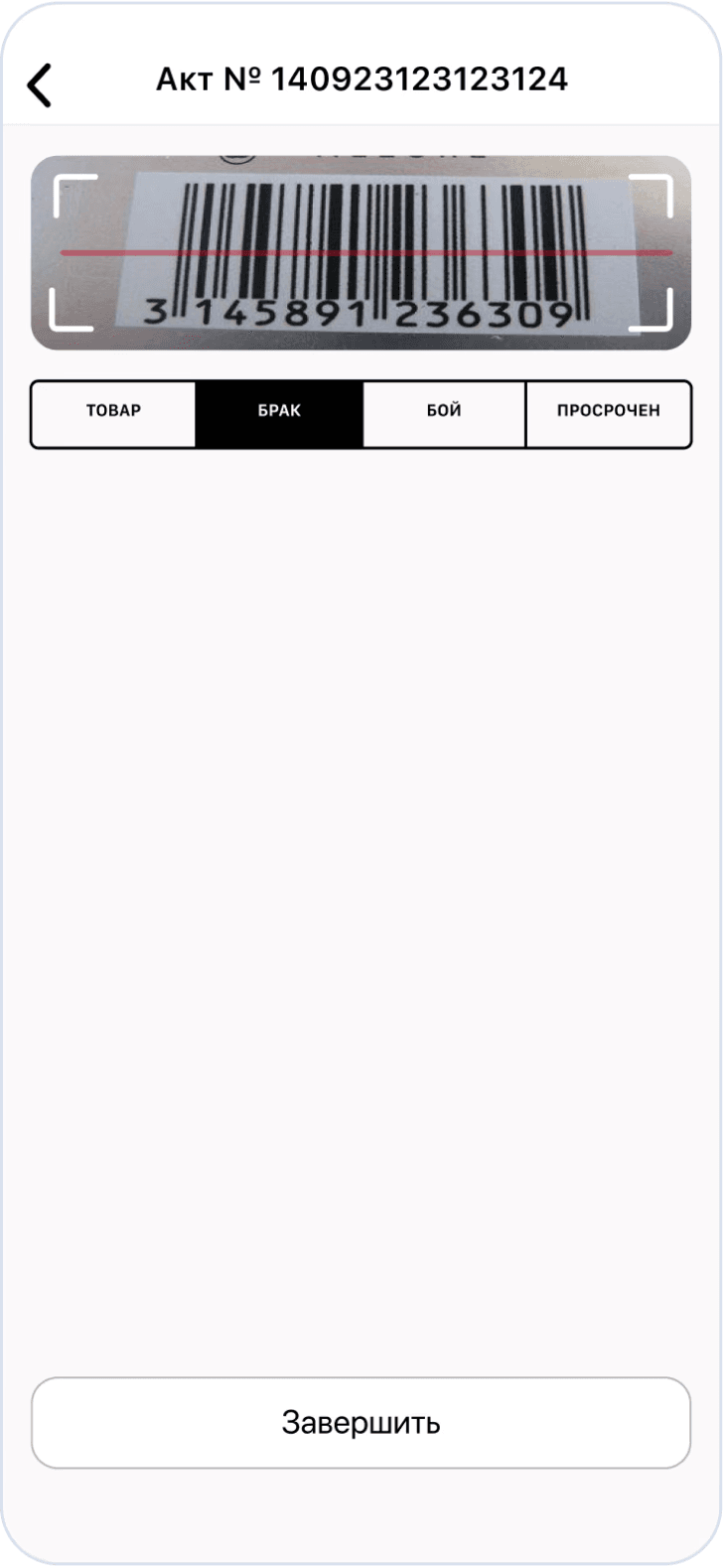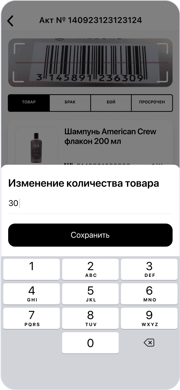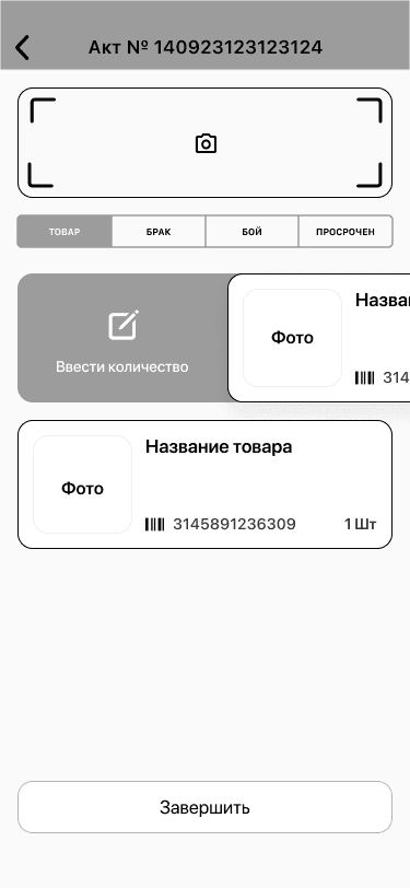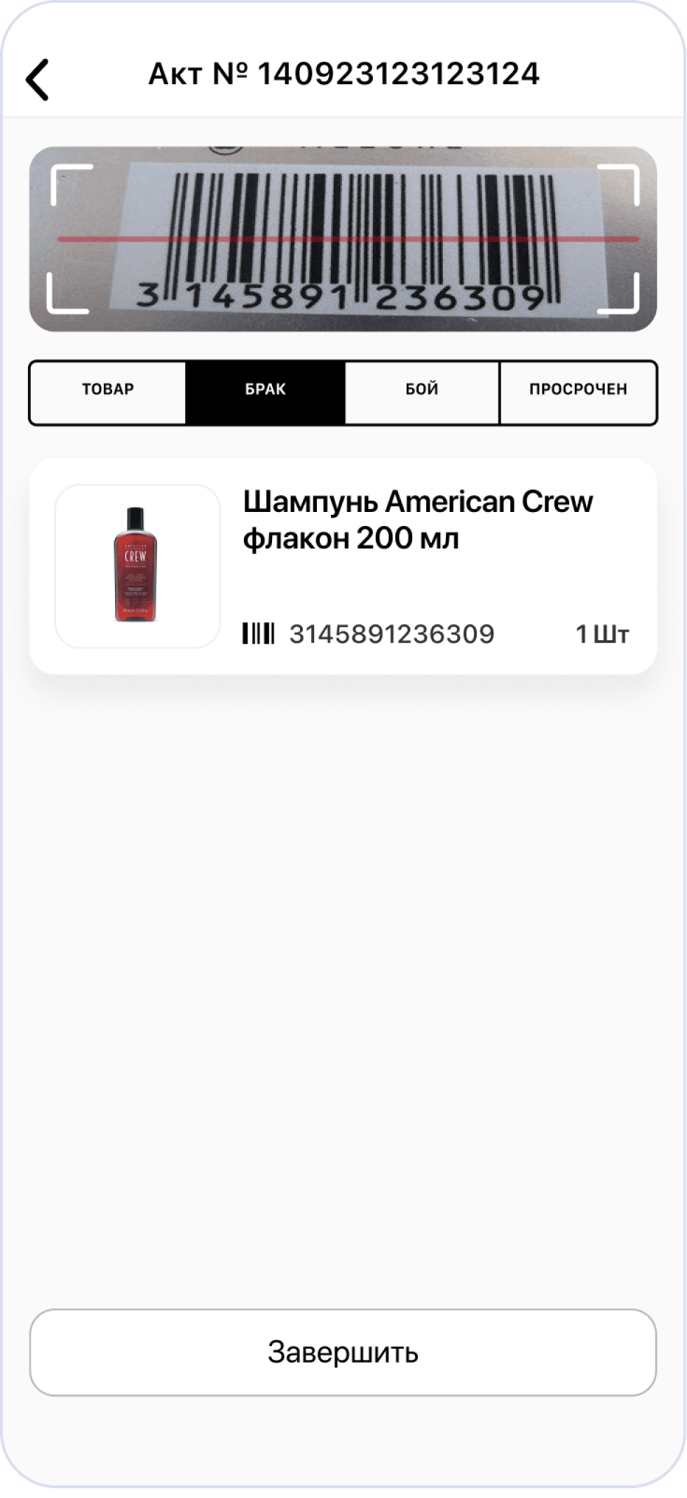 Сотрудник получает возможность управлять всем процессом на одном экране: выбирать состояние товара, сканировать и редактировать