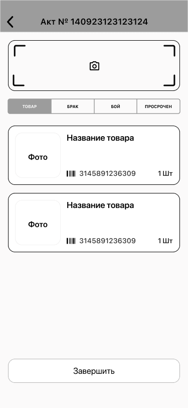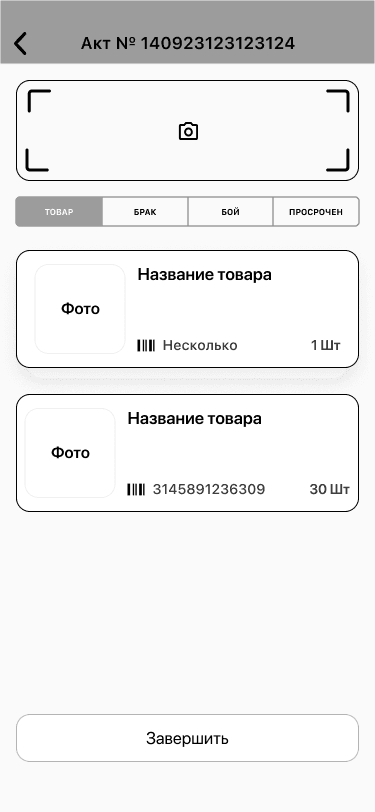 Также интерфейс обеспечивает удобный доступ к уже отсканированным товарам, позволяя легко просматривать и корректировать их при необходимости